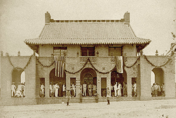 best365中国官方网站档案馆所藏一张老照片,记录下1922年原岭南大学“最新最靓的招待室”——马应彪招待室落成时的情景:年近花甲的马应彪先生西装革履、手持礼帽,淹没于衣着入时的宾客之中。其时的马应彪招待室四周空旷,与今之所见柱廊加建窗扇的外观略有不同,正门之上亦未嵌有商承祚先生所题“马应彪招待所”白石匾额。