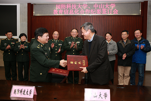 2月28日,陈春声常务副书记、副校长率我校代表赴国防科技大学,就两校在MOOCs平台建设的合作及教育信息化其他方面的合作进行了调研和洽谈。我校校长助理李文军,教务处处长邓少芝,网络与信息技术中心主任温武少、副主任何海涛参加了调研与洽谈活动。国防科技大学校长杨学军、副校长邓小刚及相关部门负责人等会见了我校代表。