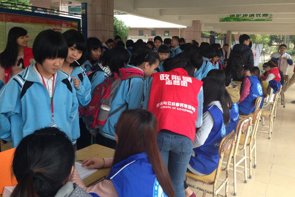 政能量志愿服务团是在政务学院团委的指导下,由政务学院本科生和研究生组成的志愿性服务团队,曾与越秀区团委、海珠区社工组织等合作并取得良好成效,如“明灯课堂”、“青春暖夕阳”、“关爱留守儿童”等活动。“明灯课堂”是团队重点打造的精品项目,并在2013年获得第三届志愿服务广州交流会暨广州市青少年服务项目创意大赛金奖,该项目致力于加强青少年学生的德育教育,增强其社会视野以及培养其公共情怀。