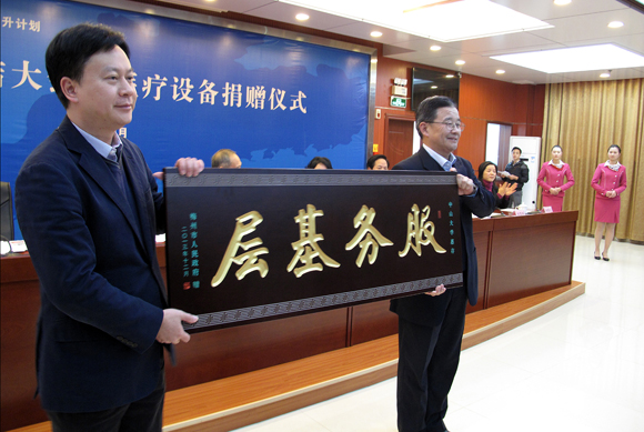 近日,“健康广东—基层医疗服务能力提升计划”梅州项目总结大会暨医疗设备捐赠仪式在梅州市举行。广东省合生珠江教育发展基金会理事长、我校原校长黄达人,我校常务副校长、“健康广东—基层医疗服务能力提升计划”领导小组组长汪建平,梅州市市长谭君铁、副市长陈丽霞,国家卫生和计划生育委员会科教司调研员敬蜀青,广东省卫生和计划生育委员会医政处处长徐庆锋等出席了会议并致辞。best365中国官方网站、广东省合生珠江教育发展基金会和梅州市相关领导、专家、嘉宾、学员代表等共计300多人参加了会议。