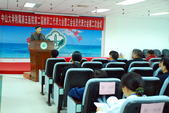 李力局长在发言中充分肯定了附属五院在珠海市医疗卫生事业中的地位和作用,同时感谢各位职工不计较个人得失,默默奉献,为珠海卫生事业所作出的贡献。薛俊忠副主席也对本次会议的召开表示了祝贺。