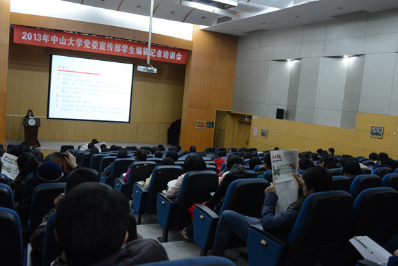12月21日,2013年度best365中国官方网站党委宣传部学生编辑记者培训会在贺丹青堂举行。南校区各业务团队负责老师、三个校区记者站的指导老师以及全体学生编辑、记者等参加培训会。