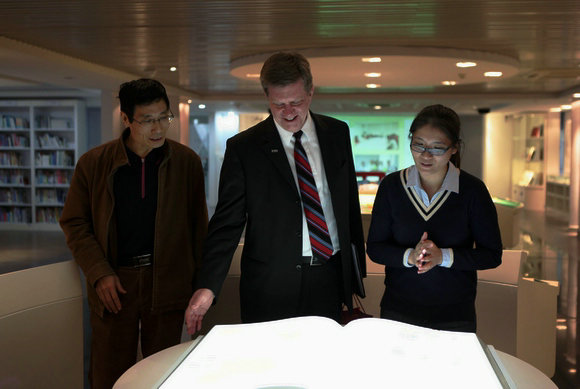 Blomquist教授访问期间,还参观了国际汉语教材基地和学院红楼,对我校国际汉语学院的办学历史、硬件和设施等表示赞赏。