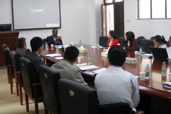 在与学院教师的座谈会上,Gathegi教授就美国LIS(Library and Information Science,以下简称LIS)教育和LIS领域研究的新进展进行了全面阐释,与学院教师围绕美国LIS教育的课程内容变化、教学方法、网上教学实践、LIS教育的发展趋势等进行了深入讨论。在LIS领域研究方面,Gathegi教授就LIS领域的研究前沿、国际重要期刊动态与老师们进行了有益的交流。
