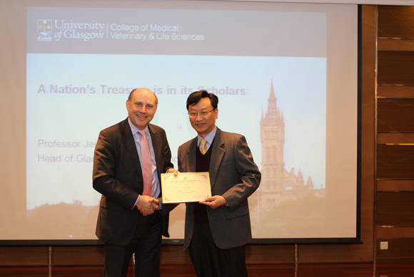 程斌常务副院长给Jeremy Bagg院长颁发讲课证书