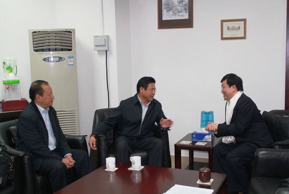 我校许宁生校长(右一)与洛松德青院长(中)一行会见