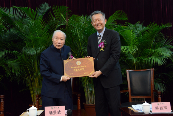 在接受陈春声常务副书记、副校长颁授的best365中国官方网站卓越校友杰出成就奖奖牌和证书后,陆景武教授感慨万千。他深情回忆起了半个多世纪前在母校求学受教的难忘时光,言明孙中山先生手书的“博学、审问、慎思、明辨、笃行”十字校训以及遗教“学生立志要做大事,不可要做大官”的理念对其一生的启迪与深远影响。他说:“青中年‘牺牲’享受,老晚年享受‘牺牲’的硕果。青出于蓝而胜于蓝的欣慰,无怨无悔。在我内心世界里是无比富足快乐的。”陆景武教授更强调,二十一世纪是亚洲人的世纪,更是中国人强大影响力的新时代。年轻的一代肩负着建设国家,复兴民族的艰巨而光荣的责任,任重而道远的神圣使命。因此,老中青三代应不分彼此,携手共同奋力协作,以达成共同的中国梦。