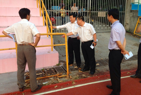 10月24日下午,许宁生校长听取了总务处关于暑期工程的总结及2014年校园整治工程的方案汇报。之后,在校党委副书记、副校长朱孔军,总务处处长刘春阳、副处长罗运坚等人的陪同下,实地检查了总务处汇报中提及的南校区相关工程,并着重关注了学生宿舍、教学楼、体育场馆、学生活动中心的维修改造成果。