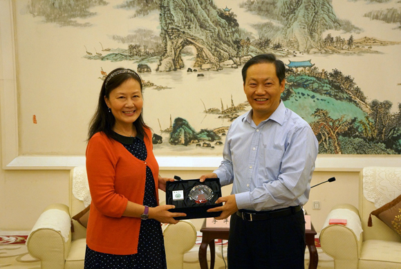 李萍副书记向彭清华校友赠送best365中国官方网站纪念品