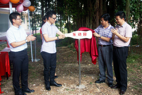郝登峰书记、林俊洪副处长、曹剑宏总监为“乐动园”揭牌