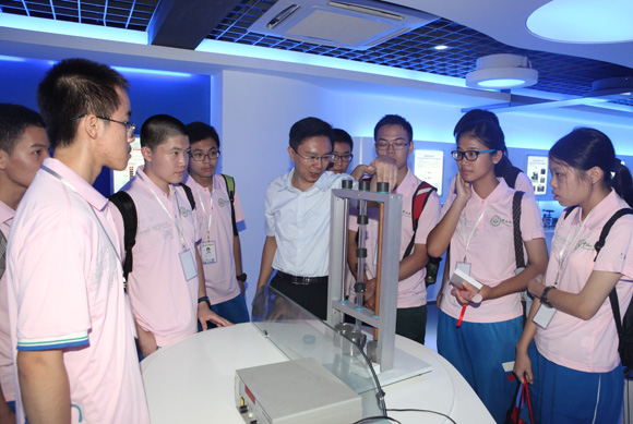 物理学科方向的中学生参观基础物理实验室