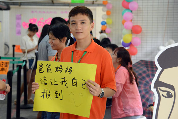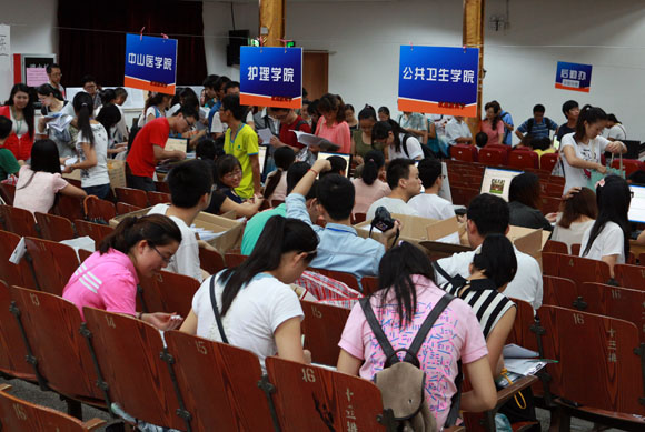 社会学与人类学院2013级研究生丁同学,对于中大的迎新活动印象深刻。她说:“我一出到地铁口就有同学在那边举牌引路,这里太热情了!今天的新生报到手续也很方便。”