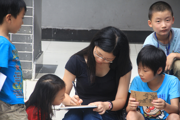 水磨站志愿者为当地青少年夏令营小朋友们送上中大明信片并写上美好祝福