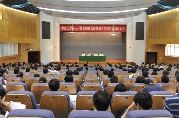 在校校领导陈春声、颜光美、喻世友、朱孔军、魏明海,近期退出校领导班子的老同志,中层干部、教授代表及其他教职工代表约300人,参加了动员大会。