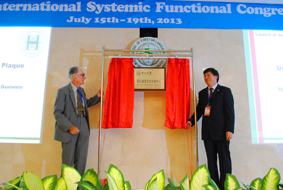 Halliday教授与黄国文教授共同为“韩礼德语言学文献中心”揭幕