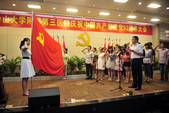七一前夕,岭南学院党委、信息科学与技术学院(软件学院)党委、环境学院党委、附属第三医院党委等党组织以庆祝建党92周年、贯彻十八大精神为主题,分别组织新党员参加入党宣誓仪式。新党员面对鲜红的党旗庄严宣誓,发出了“为共产主义事业奋斗终身”的铮铮誓言,表明了为实现党的理想和目标而奋斗的决心,表达了对党的无限忠诚和热爱。