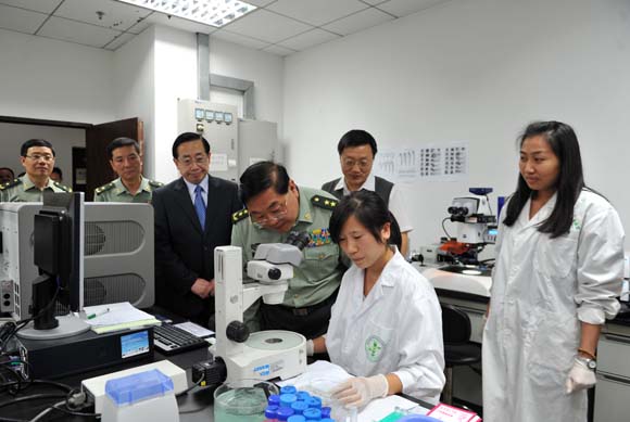 郑德涛书记陪同王建伟政委一行参观有害生物控制与资源利用国家重点实验室