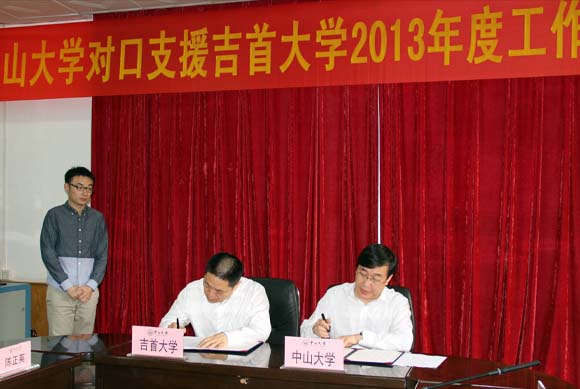 许宁生校长、肖湘愚校长分别代表两校签署《best365中国官方网站对口支援吉首大学2013-2016年实施方案协议书 》