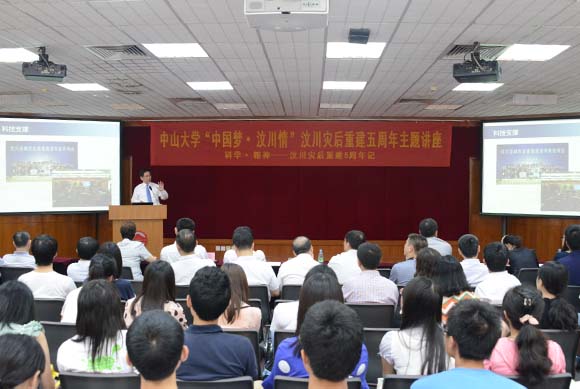 5月12日下午,由校团委主办,地理科学与规划学院承办的“中国梦•汶川情”汶川灾后重建五周年主题讲座在我校南校区岭南堂举行。广州市国土资源和房屋管理局局长、党委书记,我校地理科学与规划学院兼职教授李俊夫先生为中大学子做了题为《科学精神——汶川灾后重建五周年祭》的主题讲座。讲座结束后,许宁生校长亲切会见了李俊夫及广州援建工作组代表,感谢李俊夫先生给同学们带来精彩的经验分享。