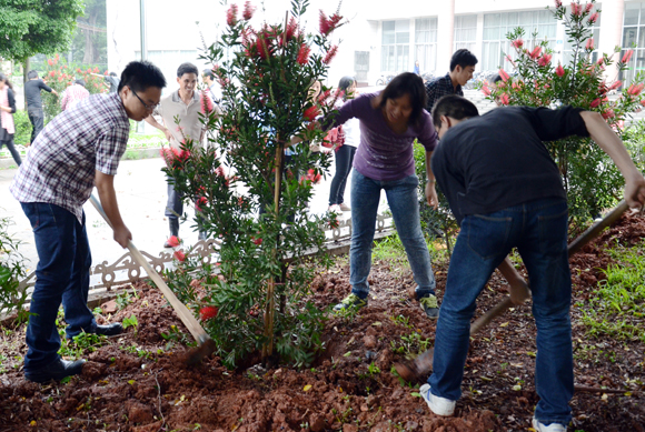 3月25日下午,我校总务处、化学与化学工程学院联合在南校区开展了毕业生植树活动。化学与化学工程学院毛宗万院长、古小红书记、总务处干部、化学与化学工程学院09级毕业班的学生代表、学校园林中心工作人员,以及学院教职工约50人参加了活动。