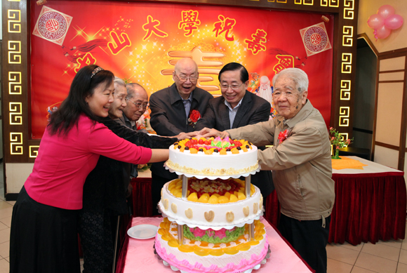 校党委书记郑德涛、副书记李萍分别参加了北校区和南校区的老寿星祝寿会。他们表示,中大有这么多老寿星欢聚一堂,既是老寿星家庭的福气,也是best365中国官方网站的福气。他们代表学校对老寿星们表示祝贺,向曾为best365中国官方网站做出积极贡献的老寿星们以及全校的离退休教职工表示感谢。他们表示,学校将努力为老同志们提供更加优良的条件,祝愿老同志健康长寿、幸福美满。