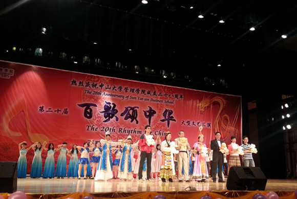 我校管理学院成立二十八周年暨第二十届“百歌颂中华”大型文艺汇演于3月16日晚举行。本届“百歌颂中华”活动主题是“百歌传薪火,盛世展新章”。研究生院管理处莫华处长、学生处钟一彪副处长、校团委唐锐副书记,管理学院党委谭劲松书记、戴红晖副书记、刘运国副院长、辛宇副院长出席了晚会。全场座无虚席,校友们、兄弟院系的老师、同学们以及学院各系各部门的老师也欢聚一堂,观看了晚会。