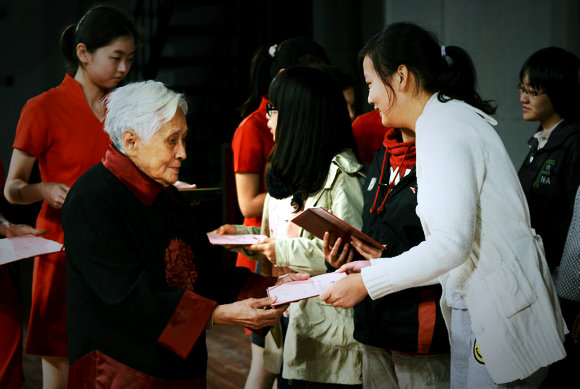 沈祖荣先生之女沈宝媛女士为获奖学生颁奖