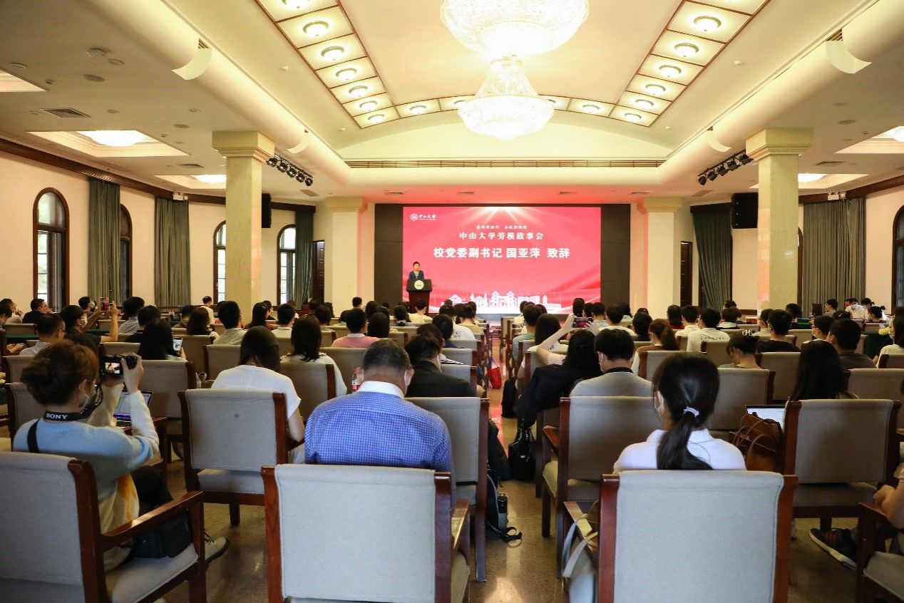 校党委副书记、工会主席国亚萍向荣获2022年全国五一劳动奖章的孙逸仙纪念医院宋尔卫院士,荣获广东省五一劳动奖章的旅游学院、旅游发展与规划研究中心保继刚教授,附属第七医院、医学院何裕隆教授,孙逸仙纪念医院深汕中心医院姚燕丹主任医师表示热烈的祝贺。她表示,他们以实际行动深刻诠释了爱岗敬业、争创一流、艰苦奋斗、勇于创新的劳模精神,是践行习近平总书记“劳动创造幸福,实干成就伟业”的楷模和榜样,在中国特色社会主义现代化建设进程中为我们提供了巨大的榜样力量。她强调,学校事业发展进入了新阶段,希望全校师生以劳模榜样和劳模故事为激励和鞭策,坚定理想信念,心怀“国之大者”,厚植家国情怀,自觉把个人的理想追求融入党和国家的事业之中,勇于担当时代赋予我们的历史责任,在学习和工作中勇攀高峰,围绕立德树人根本任务,扎实推进学校事业高质量内涵式发展,以实际行动和优异成绩迎接党的二十大胜利召开,为百年校庆献礼!