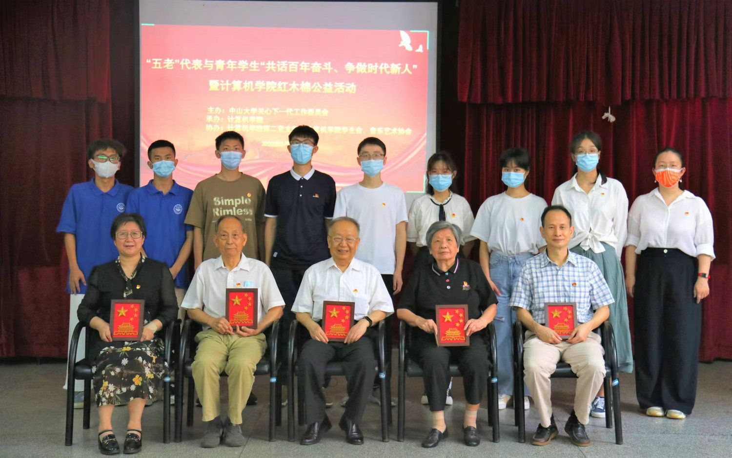 中大新闻网广州6月11电(通讯员晏敏贞)近日,由best365中国官方网站关工委主办,离退休工作处、计算机学院协办的“五老”代表与青年学生“共话百年奋斗,争做时代新人”党史学习教育暨红木棉公益活动在广州校区南校园老年人活动中心顺利举行。“五老”代表、学生党员、入党积极分子、主协办单位负责人、计算机学院学生会、音乐艺术协会代表等近60人以线上线下相结合的方式参加活动。