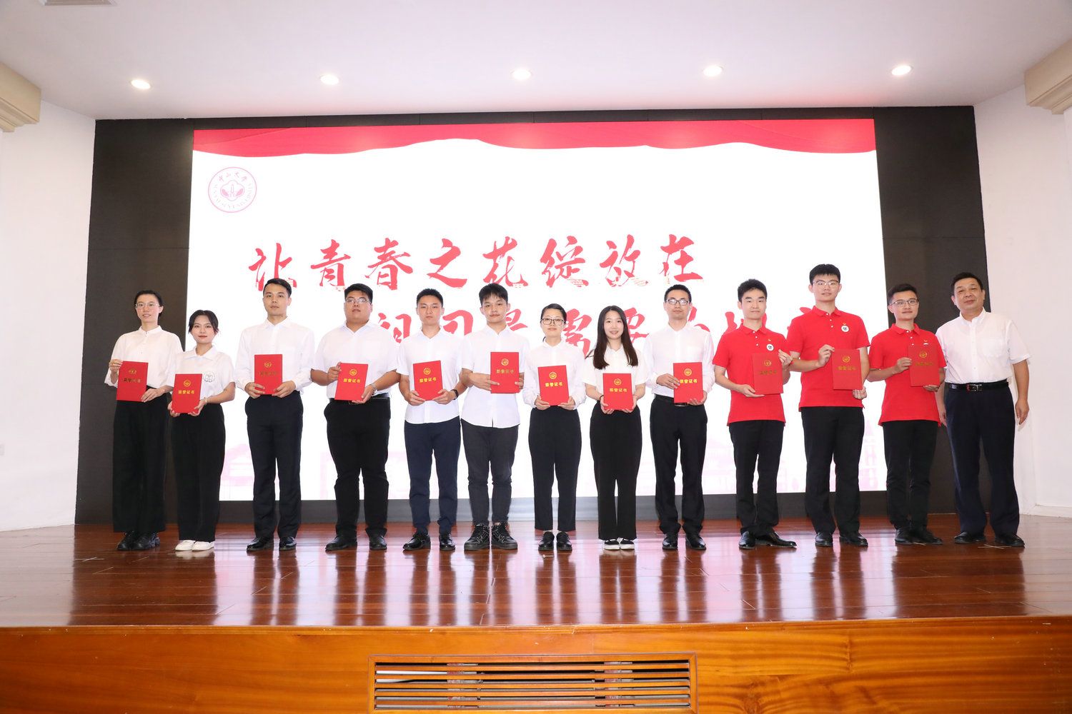 校党委副书记余敏斌为学生代表颁发荣誉证书(来源:党委学生工作部)