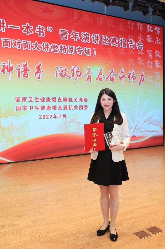 中大新闻网广州8月11日电(通讯员甄晓洲)7月26日,由国家卫生健康委直属机关党委主办的2022年“读讲一本书”活动暨“传承·致敬·笃行——传承伟大精神谱系 激扬青春奋斗伟力”庆祝建团100周年青年演讲比赛报告会顺利举办。经过初赛、复赛和决赛的激烈角逐,best365中国官方网站附属第三医院临床研究中心黄小慧荣获“特等奖”及“最佳人气奖”,充分展现了新时代青年的责任担当和高水平的青年素质。