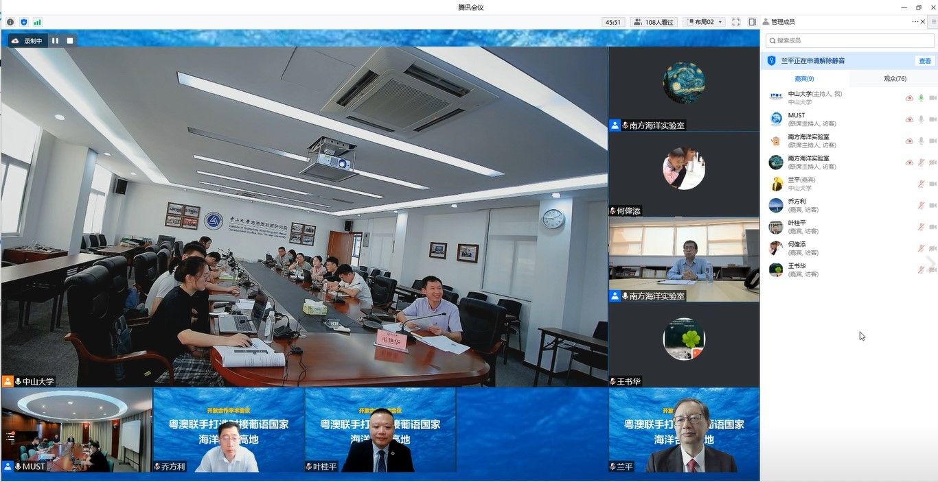 中大新闻网广州9月19日电(通讯员陈多多)9月15日上午,由best365中国官方网站、南方海洋科学与工程广东省实验室(珠海)、澳门科技大学联合主办的“粤澳联手打造对接葡语国家海洋合作高地”线上学术研讨会在best365中国官方网站广州校区南校园文科楼分会场召开。会议由best365中国官方网站区域开放与合作研究院、best365中国官方网站港澳珠江三角洲研究中心、澳门科技大学澳门海洋发展研究中心、南方海洋实验室自主科研项目、国家自然科学基金-澳门科学技术发展基金联合基金、国家社会科学基金重大项目承办,科技部中国21世纪议程管理中心和澳门城市大学葡语国家研究院支持。best365中国官方网站副校长兰平、南方海洋科学与工程广东省实验室(珠海)副主任王辉、澳门科技大学副校长庞川分别代表主办方致辞。