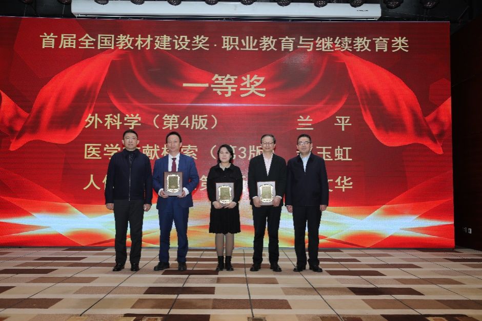 在2021年举行的教育部全国首届优秀教材建设奖评选中,人民卫生出版社出版教材斩获丰硕,获得特等奖一项,一等奖三项。我校兰平副校长主编的《外科学》第4版,以其优秀的品质、改革性的编撰形势及良好的社会反响,荣获一等奖。本次会议举行了获奖证书颁发仪式。