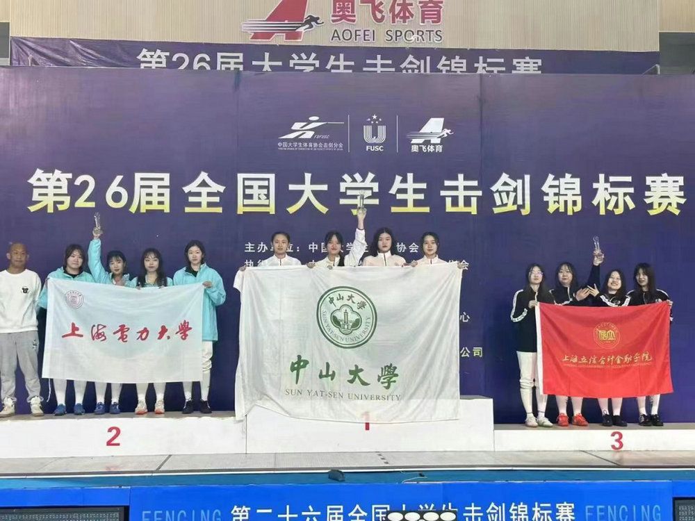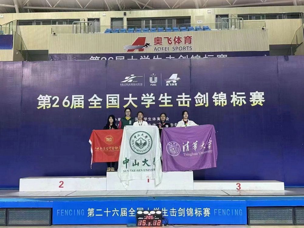 佩剑项目荣获1金2银1铜。该项目我校有7名队员进入个人排名前十六,其中2021级政务院晁天如同学和2019级王颖同学凭借坚韧顽强的意志品质,荣获丙A组女子佩剑个人第二及个人第三的佳绩;在团体项目中,男子佩剑及女子佩剑队员齐心协力,目标一致,斩获丙A组女子佩剑团体第一,男子佩剑团体第二。