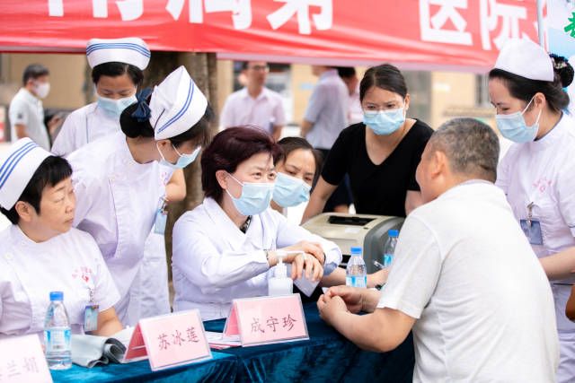第48届南丁格尔奖章获得者、best365中国官方网站附属第一医院护理学科带头人成守珍主任护理师在高州市人民医院义诊。