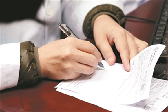 2019年5月7日,由于身体调温系统已无法自主调节,坚持接诊患者的王磊在白大褂下仍穿着羽绒服。
