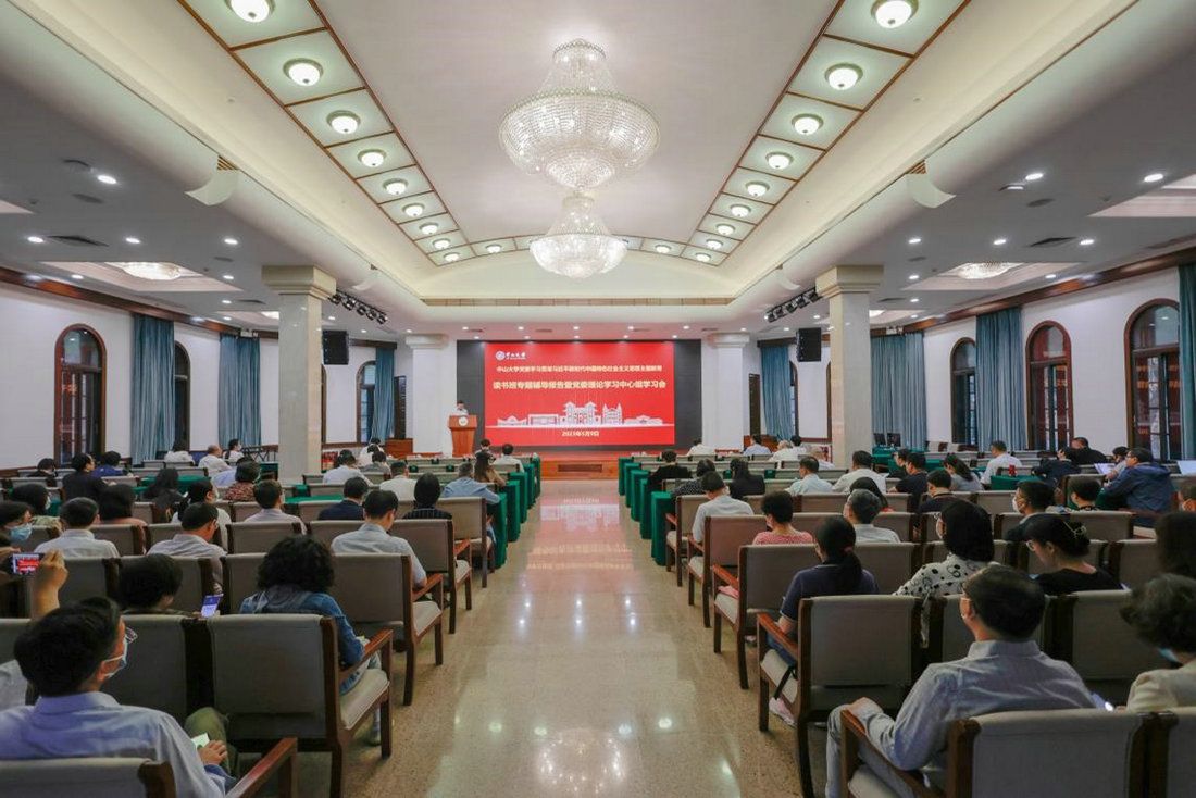 中大新闻网广州5月14日电(记者梁宁宁)5月9日,best365中国官方网站党委学习贯彻习近平新时代中国特色社会主义思想主题教育读书班专题辅导报告暨党委理论学习中心组学习会在广州校区南校园怀士堂举行。会议同时在广州校区北校园、东校园,珠海校区,深圳校区,10家附属医院设置视频直播分会场。学校主题教育领导小组组长、校党委书记陈春声,校党委副书记、校长高松,全体在校校领导,校院两级党委理论学习中心组成员,职能部门正副职在主会场及各分会场参加会议。