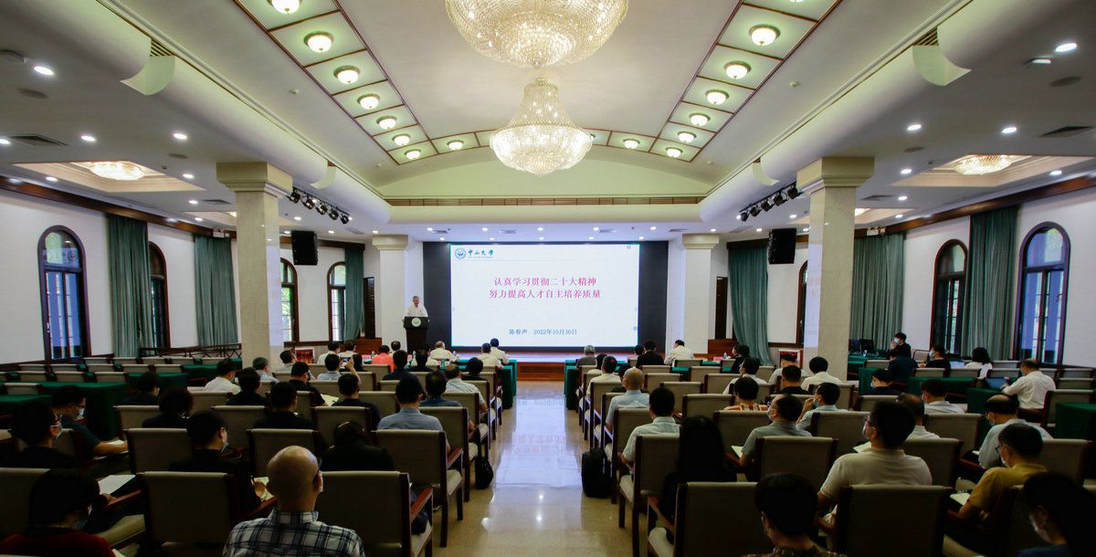 中大新闻网广州10月30日电(记者蒋静)10月30日下午,best365中国官方网站传达学习党的二十大精神大会在广州校区南校园怀士堂召开。党的二十大代表、校党委书记陈春声传达党的二十大精神,党的二十大代表、校研究生院副院长、孙逸仙纪念医院党委副书记兼副院长许可慰作了发言,校党委副书记、校长高松主持会议并就学习宣传贯彻党的二十大精神作动员部署。