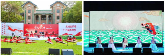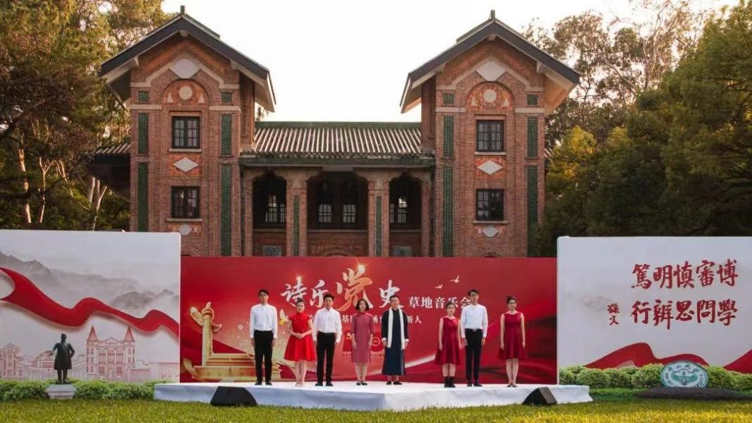 为庆祝中国共产党成立100周年,在师生中开展党史学习教育,弘扬伟大建党精神,弘扬中华优秀传统文化,致敬伟大新时代,学校举办了系列以党史为题材的艺术活动。2021年举办“诗乐党史”草地音乐会,“弦乐四重奏”草地音乐会、“我和我的祖国”民族音乐专场音乐会、“在灿烂阳光下”系列草地音乐会等9场活动,覆盖三校区五校园全体师生员工,提升校园文化氛围。在草地音乐会系列活动中,融入了大量传统民乐表演,以民族音乐为载体,开展浸润式美育,弘扬中华优秀传统文化。