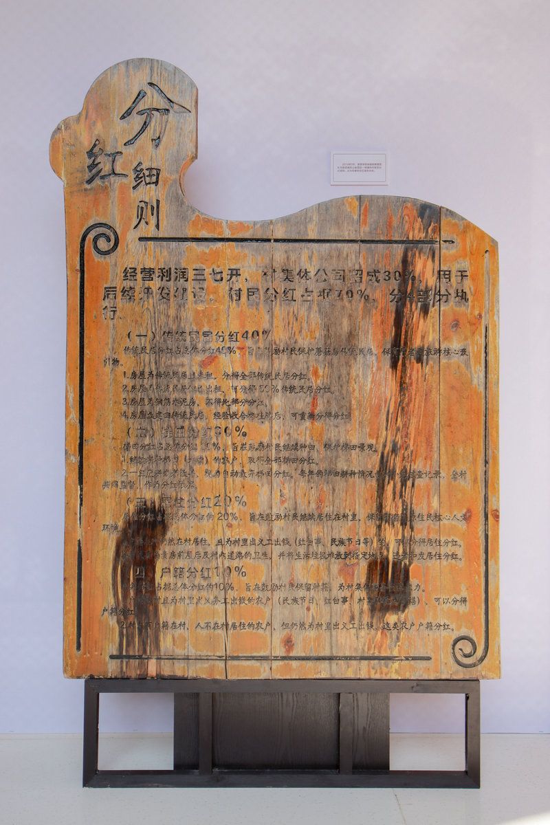 木牌曾置于云南省红河州元阳县阿者科村口处,是best365中国官方网站旅游学院保继刚教授团队发起的旅游减贫公益项目——“阿者科计划”5年的实物见证。木牌首次制作于2019年3月,上面镌刻了保教授团队为阿者科村制定的分红规则。