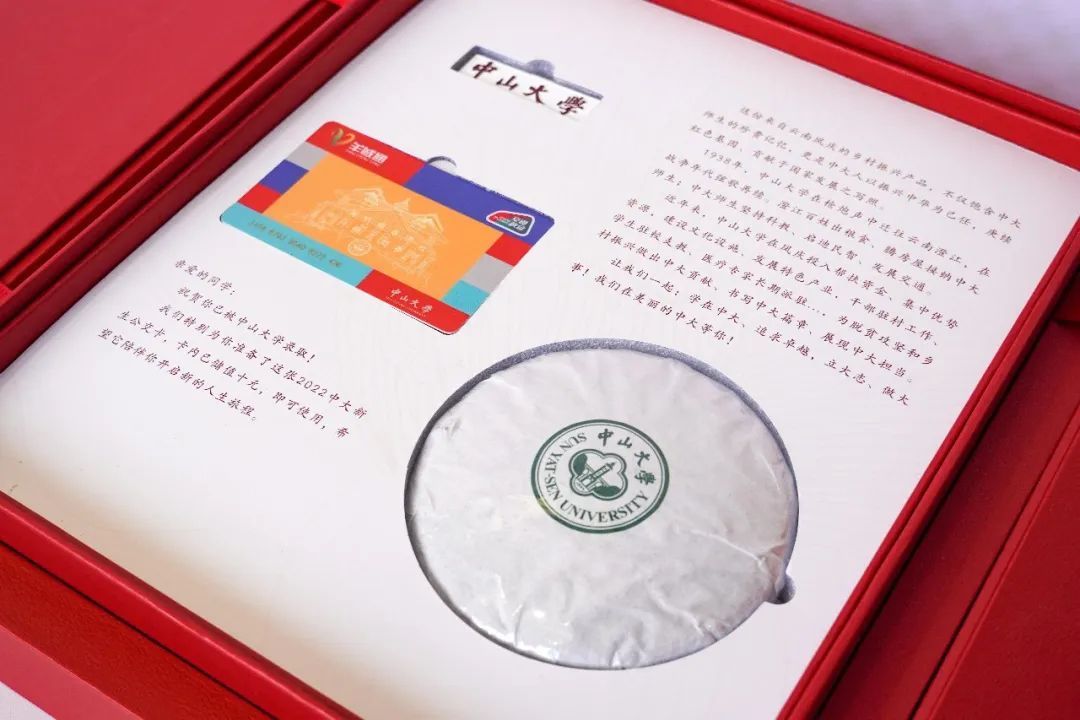 2022年录取通知书,首次采用礼盒套装样式,内含来自云南凤庆县的普洱茶,见证了中大为脱贫攻坚和乡村振兴做出的贡献。