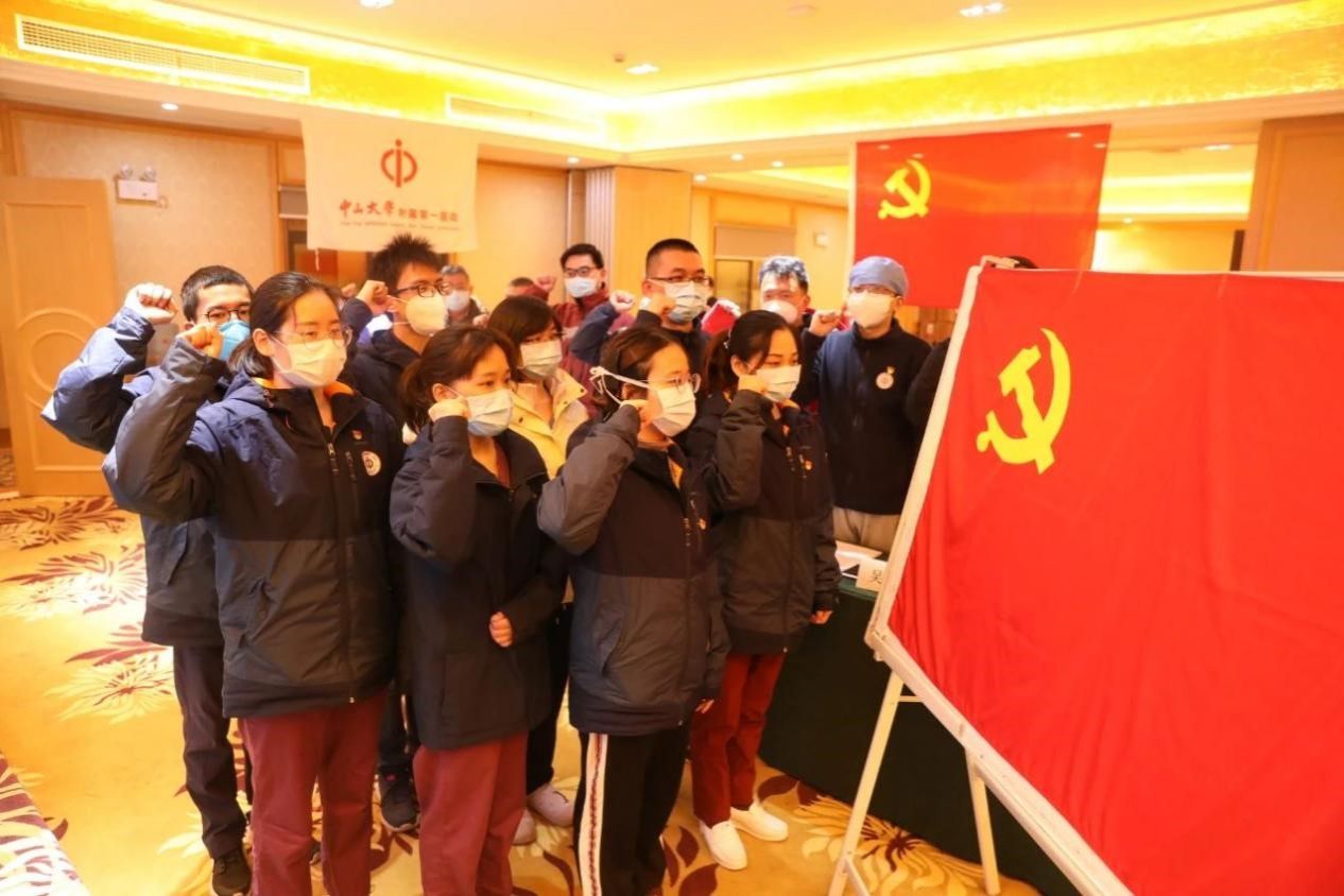 2020年3月,附属第一医院驰援武汉医疗队14名火线入党的新党员在武汉协和医院和汉口医院宣誓入党