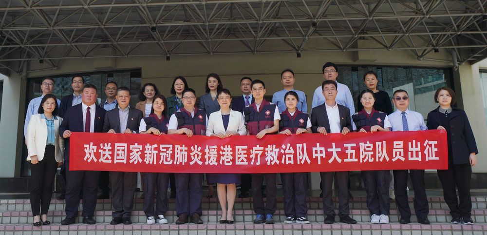 2022年3月14日,附属第五医院国家援港医疗队队员出征。