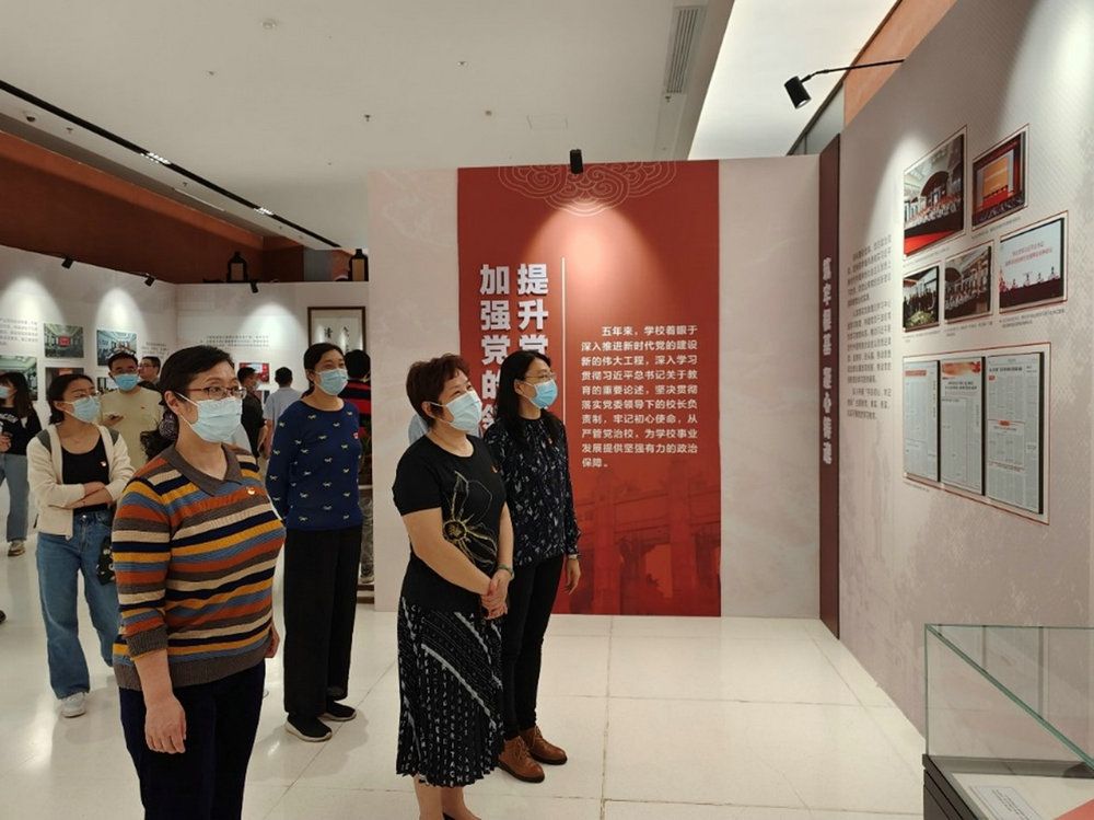 支部党员通过参观主题展览设置的高举旗帜、立德树人、国之大者、人民至上4个展区,透过图片、图表、实物、模型及多媒体互动等多种方式,生动地“聆听”了五年来学校心怀“国之大者”,奋进一流前列的故事,深入了解了学校自第十三次党代会以来在坚持党的领导、推进党的建设、统筹战略规划、聚焦人才培养、加强队伍建设、着力科学研究、提升服务能力等方面的重要发展成就和改革发展经验。展览内容丰富详实,令人赞叹,极大地增强了支部党员们的自豪感、责任感和使命感。