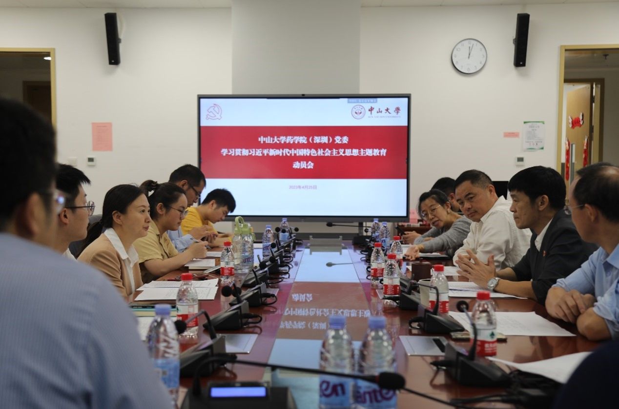 中大新闻网广州5月7日电(通讯员周焕彬)4月25日,药学院(深圳)召开学习贯彻习近平新时代中国特色社会主义思想主题教育动员会,深入学习贯彻习近平总书记在主题教育工作会议上的重要讲话精神,认真贯彻落实中央和学校党委关于开展主题教育的部署要求。学院党委书记杨德胜作动员讲话,学院党委副书记付艳艳作工作部署并主持会议,学校主题教育巡回指导七组副组长王莉娜到会指导。院长邓文斌、副院长谢智勇以及学院领导班子成员、党委委员、各党支部书记参加会议。