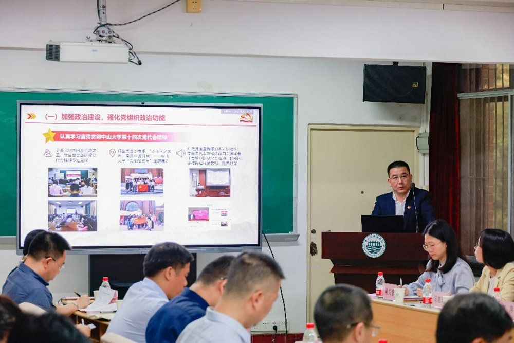 法学院党委书记梅成达汇报学院党建工作情况(党委宣传部 方东妮 摄)