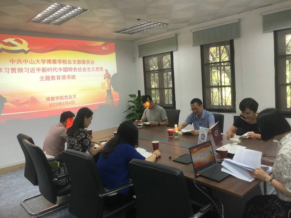 中大新闻网讯(通讯员孟琳)为深入开展学习贯彻习近平新时代中国特色社会主义思想主题教育,按照“学思想、强党性、重实践、建新功”的总要求,5月12日前,学院党总支扎实开展读书班学习,其中10次由学院按专题分段举办,4次参加学校专题辅导报告,把习近平新时代中国特色社会主义思想转化为坚定理想、锤炼党性和指导实践、推动工作的强大力量,努力促进党员、干部在以学铸魂、以学增智、以学正风、以学促干方面取得实实在在的成效。