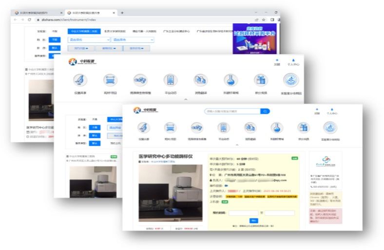针对多院区实验室预约与共享难的问题,实验部与信息中心还主导建立了科研共享联盟系统,多院区专家和学生可以在线预约广州的六个实验平台,共享科研设备,粤东与肇庆院区的实验平台也将在后半年加入系统预约队列,全院四个院区8个实验平台将全部实现统一管理与共享。