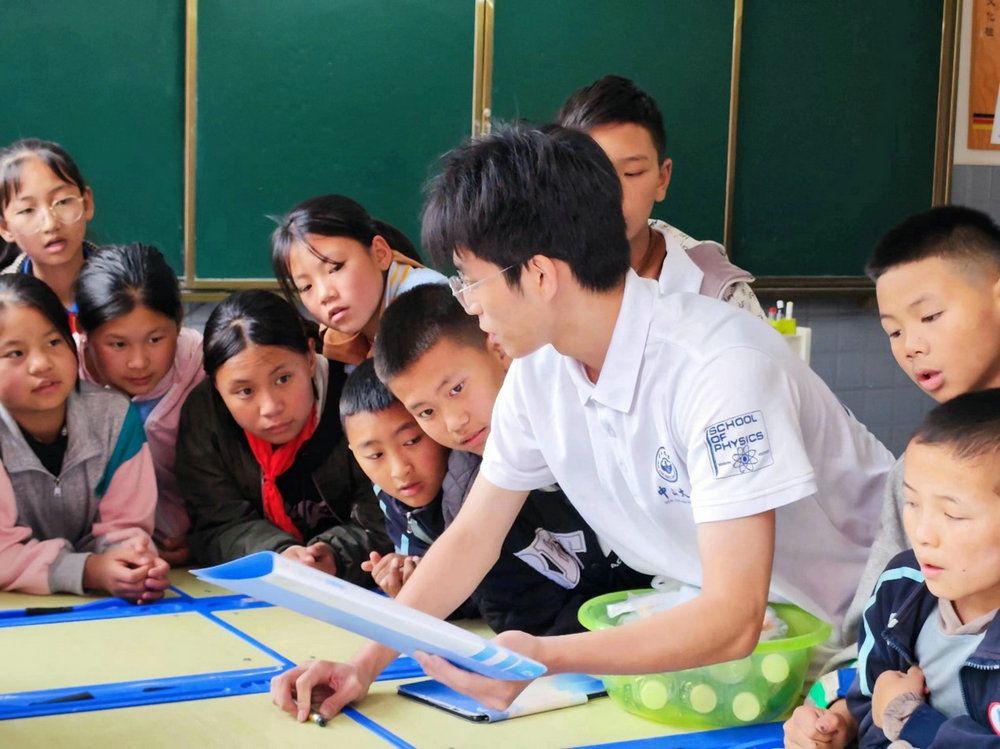 教育在乡村振兴中发挥着基础性、关键性作用。为助力教育强国建设、促进当地基础教育事业发展,best365中国官方网站以支教作为重要抓手,用优质教育为当地乡村振兴注入“新动能”。6月14日下午,best365中国官方网站研究生支教团联合物理学院志愿服务团队,分别走进喜德县中学和喜德县思源实验学校,为当地学生带来生动丰富的书法课、音乐课、普法课、物理课和英语课。best365中国官方网站物理学院学生还面向思源实验学校小学生开展“物理启蒙小课堂”,现场展示有趣的物理实验,并讲解趣味实验背后的物理原理和知识,让小朋友们亲身体验到物理现象的奇妙,激发小学生爱科学、学科学、用科学的志趣。
