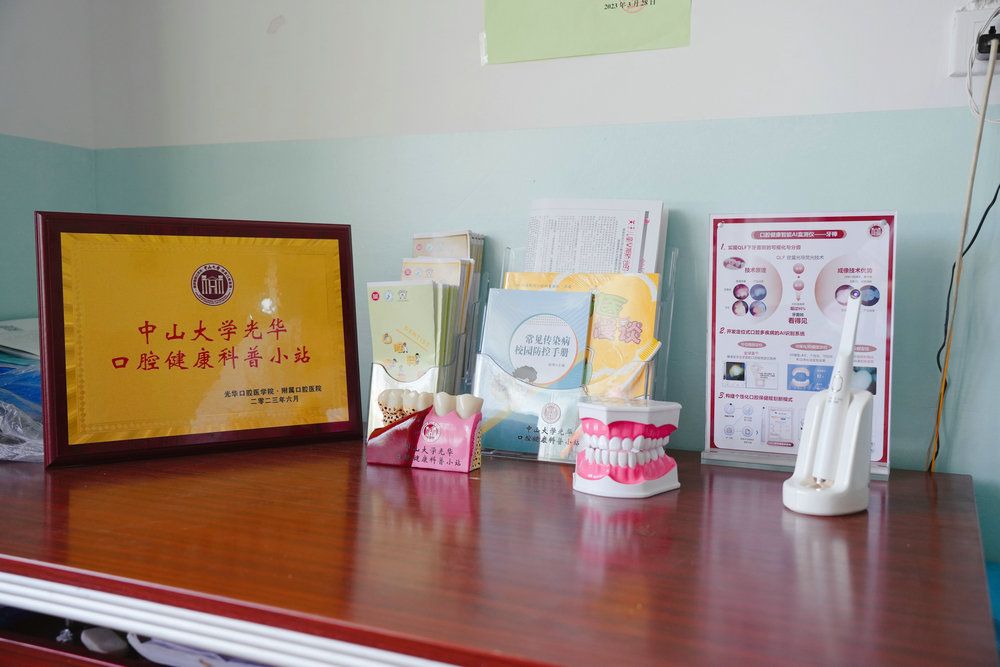 服务队创造性地探索新模式:以学院师生参与研发的“定位式口腔多疾病的AI识别系统”为核心,在边防哨所、乡村社区、大中小学、幼儿园,成功建立了7个“口腔健康科普小站”。